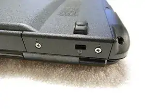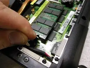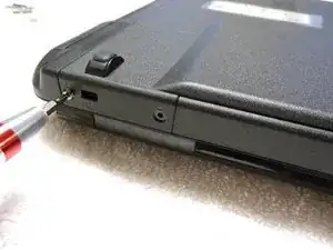 Удалите винт, фиксирующий нижнюю панель ноутбука, и положите его в безопасное место.