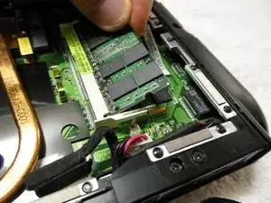 Модуль памяти зафиксирован двумя защёлками. Перед тем как отодвинуть эти защёлки, убедитесь, что вы разряжены от статики (подойдите к кухонному смесителю и прикоснитесь к металлическому крану).