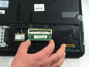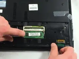 Удалите оперативную память, нажав на оба зажима, видимые с обеих сторон оперативной памяти.