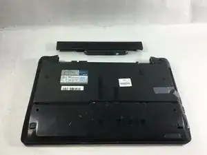 Сдвиньте другой слайдер с левой стороны аккумулятора влево, и другой рукой вытащите аккумулятор из ноутбука.