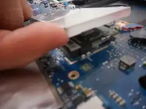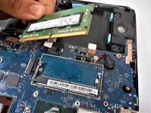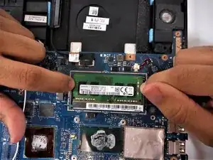С помощью пальца поднимите крышку RAM, нажав на маленький язычок в одном из углов.