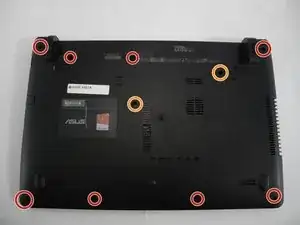 Отвинтите десять винтов на задней крышке ноутбука крестовой отвёрткой Phillips #1.