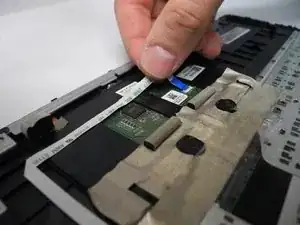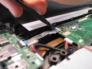 Больший кабель — с разъёмом низкого усилия (ZIF). Как следует из названия, для вставки или отключения этого кабеля не требуется прилагать усилие. Отключите этот ленточный кабель, разблокировав фиксатор и аккуратно вытянув кабель.