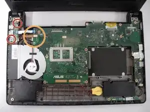 Снимите два винта 3 мм, удерживающих вентилятор.
