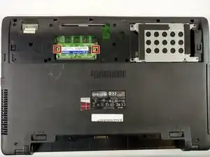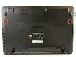 Положите ноутбук на ровную поверхность донной стороной вверх.