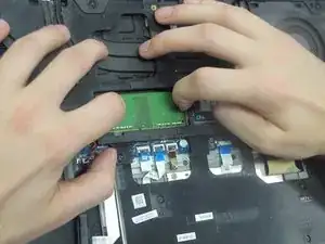 Снимите нижнюю крышку с ноутбука, отдернув ее назад.