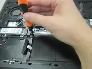 Этот винт нельзя полностью извлечь из нижней крышки. Он только поднимет заднюю крышку ноутбука и позволит ее снять.