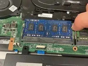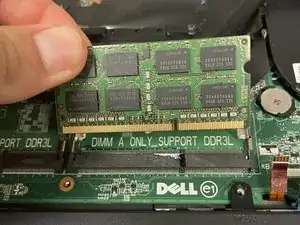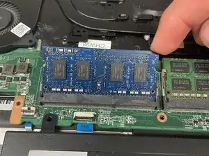 Если есть второй модуль оперативной памяти, оттяните зажимы в стороны от модуля оперативной памяти.