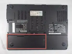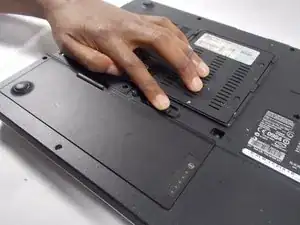 Положите ноутбук крышкой вниз, чтобы батарея была обращена к вам.