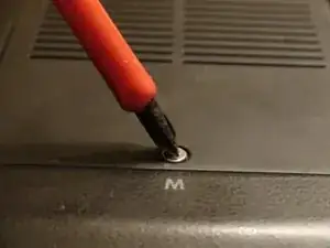 Удалите винт из панели M с помощью отвертки Phillips #1.