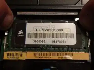 Осторожно выдвиньте оперативную память пальцами, чтобы удалить её.