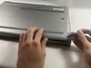 Подденьте крышку батареи от корпуса компьютера с помощью инструмента для открытия.