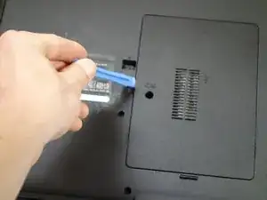 Переверните ноутбук так, чтобы нижняя сторона была видна.