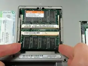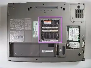 Чтобы увидеть процесс удаления крышки памяти, следуйте инструкции по замене памяти Dell Inspiron 9100.