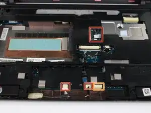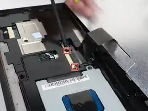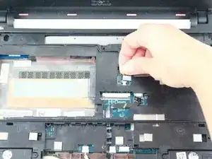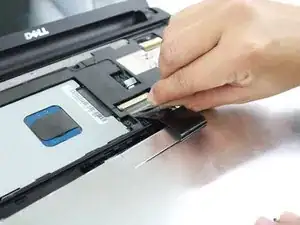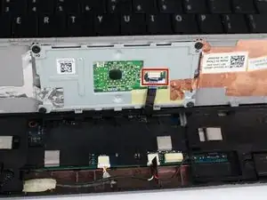 Аккуратно отсоедините кабель тачпада от опорной планки.