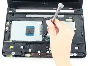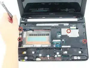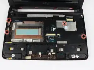 Удалите три винта Phillips 0 длиной 8 мм, закрепляющие клавиатуру.