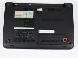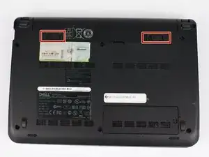 На нижней стороне ноутбука найдите съёмную крышку и винт, крепящий её к корпусу. Ослабьте винт и снимите крышку.