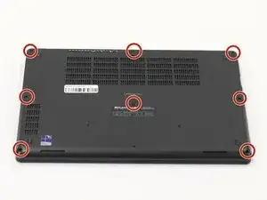 Используйте отвертку Phillips #00, чтобы ослабить восемь винтов, удерживающих нижнюю крышку.