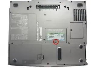 Удалите винт Philips #1 размером 3,9 мм из отсека для аккумулятора.
