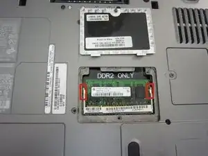 Используя два пальца, отведите серебристые концы от оперативной памяти, пока она не освободится.