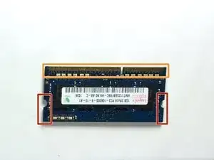 Пожалуйста, не касайтесь стороны подключения оперативной памяти (показана оранжевым) пальцами. Это может вызвать коррозию соединения.