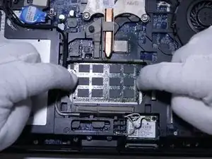 Удалите первую планку оперативной памяти из петли.