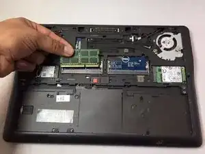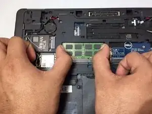 Аккуратно потяните модуль ОП под углом, отталкивая его от остальной части компьютера.