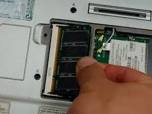 Убедитесь, что оперативная память вставлена до конца, прежде чем нажать на память вниз, чтобы обе металлические фиксирующие скобки защелкнулись на место.