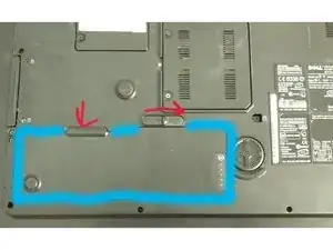 Чтобы освободить батарею, потяните переключатель как можно правее, а затем используйте пальцы, чтобы поднять батарею к себе под пластиковую ручку.