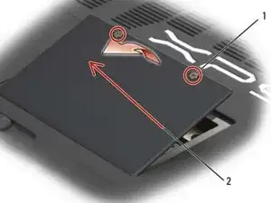 Переверните компьютер, ослабьте винты на крышке модуля памяти и затем снимите крышку.