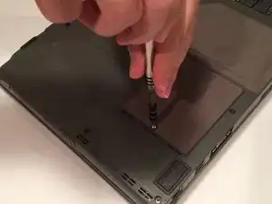 Используя отвертку Phillips #1, удалите винт размером 6 мм из отсека для оперативной памяти в нижнем левом углу задней крышки.
