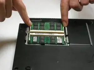 Извлеките модуль оперативной памяти, отодвинув фиксирующие зажимы в стороны.