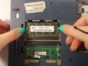 Используйте отвертку Philips #0, чтобы снять винты 4 мм с крышки оперативной памяти.