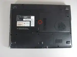 Ослабьте указанный винт Philips, который соединяет крышку отсека памяти с корпусом.