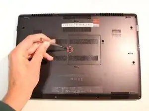 Открутите единственный винт длиной 9.8 мм на нижней стороне ноутбука с помощью отвертки #0.