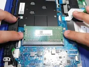Освободите металлические зажимы по бокам модуля оперативной памяти, осторожно оттащив их.