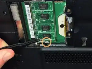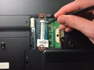 Повторите шаг 5 и используйте пинцет, чтобы аккуратно вытянуть оперативную память из слота