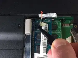 Поднимите крышку оперативной памяти к защелке для извлечения батареи