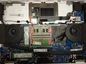 Вытащите чипы оперативной памяти из соответствующих слотов.