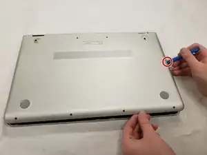 Вставьте пластиковый инструмент iFixit между крышкой и нижней частью корпуса.
