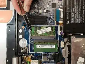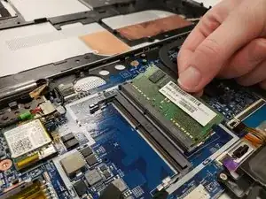 Извлеките оперативную память, потянув её под углом от слота.