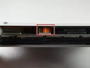 Сдвиньте рычаг разблокировки боковой крышки сервиса вправо.
