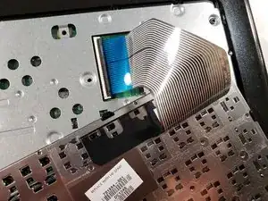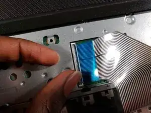 Наклоните клавиатуру, чтобы открыть разъем с нулевой силой вставки, к которому подключен кабель клавиатуры.