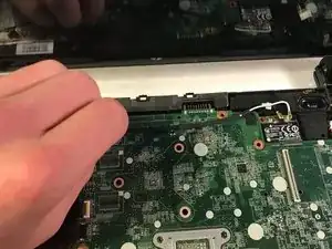 Отстегните кабель WLAN от крепления, чтобы материнская плата могла сдвинуться.
