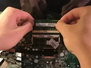 Когда модуль памяти немного ослабнет, потяните модуль вверх.