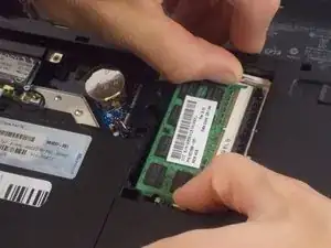 Отодвиньте два металлических зажима друг от друга, чтобы высвободить оперативную память.