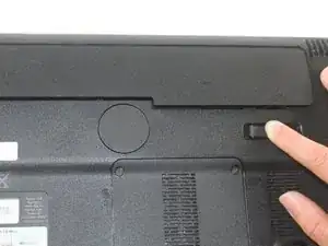 Сдвиньте переключатель под отсеком для батареи влево до тех пор, пока отсек не откроется. Это может потребовать некоторого усилия.