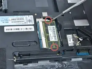 Отодвиньте два зажима по бокам отсека для оперативной памяти от модуля памяти.