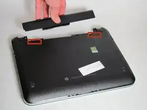 Удалите аккумулятор, нажав на два зажима и медленно, но уверенно потянув аккумулятор наружу.