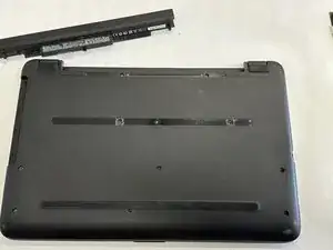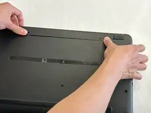 Переверните ноутбук так, чтобы нижняя часть была сверху, а внешняя батарея находилась вверху.